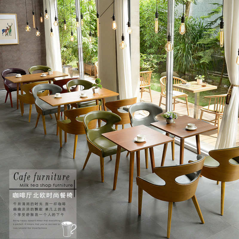 简约现代咖啡厅实木椅子休闲主题餐厅洽谈餐饮奶茶甜品店桌椅组合