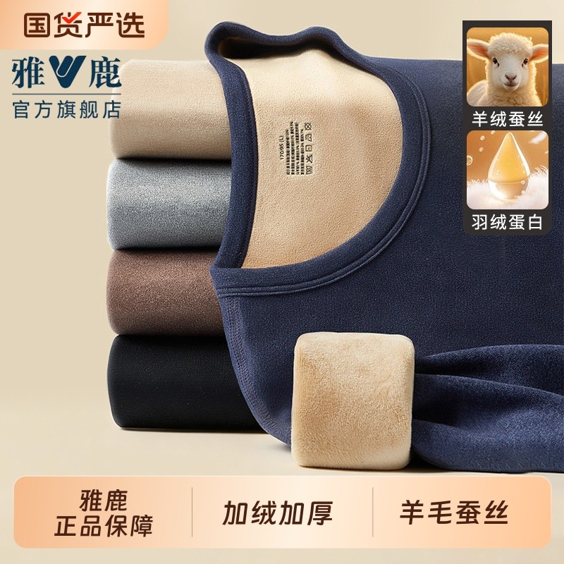 雅鹿保暖内衣男士加绒加厚秋衣秋裤套装男款绒德发热贴身防寒冬季