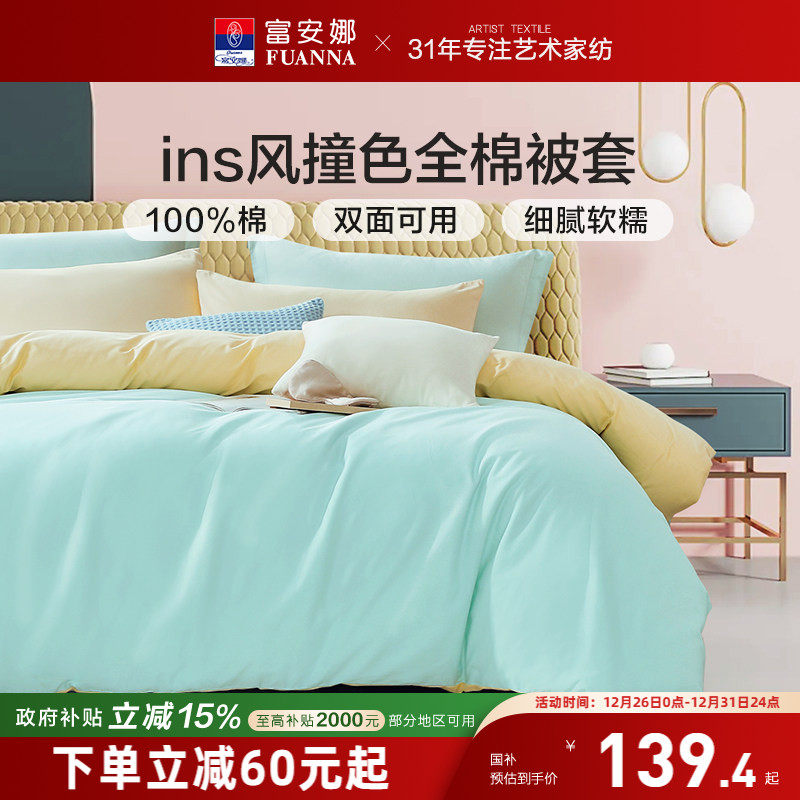 富安娜家纺纯棉被套单件被罩100全棉宿舍简约单人双人全棉床品
