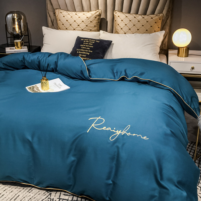新款上市!外贸出口刺绣纯棉被套四件套100%全棉厚实斜纹被罩床品