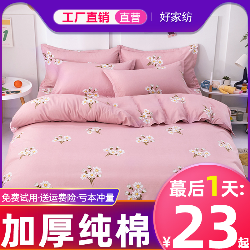 A类纯棉四件套新款床上用品全棉床单被套被罩床笠学生宿舍三件套4
