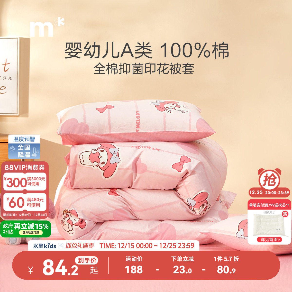水星儿童纯棉被套单件婴幼儿A类抗菌全棉被罩美乐蒂宿舍床上用品