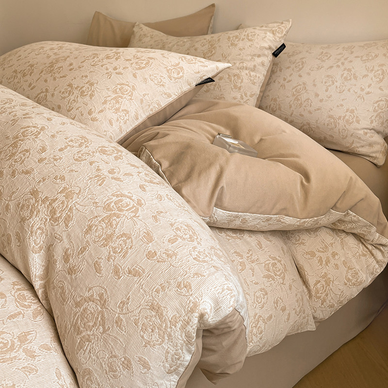 60支长绒棉磨毛四件套纯棉被套床单全棉秋冬新款法式数码印花床品