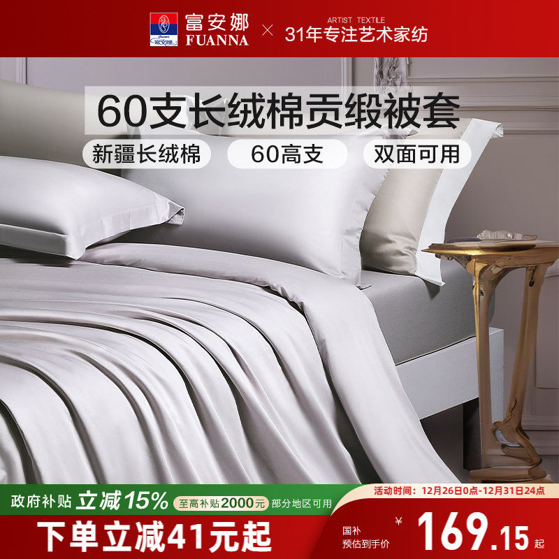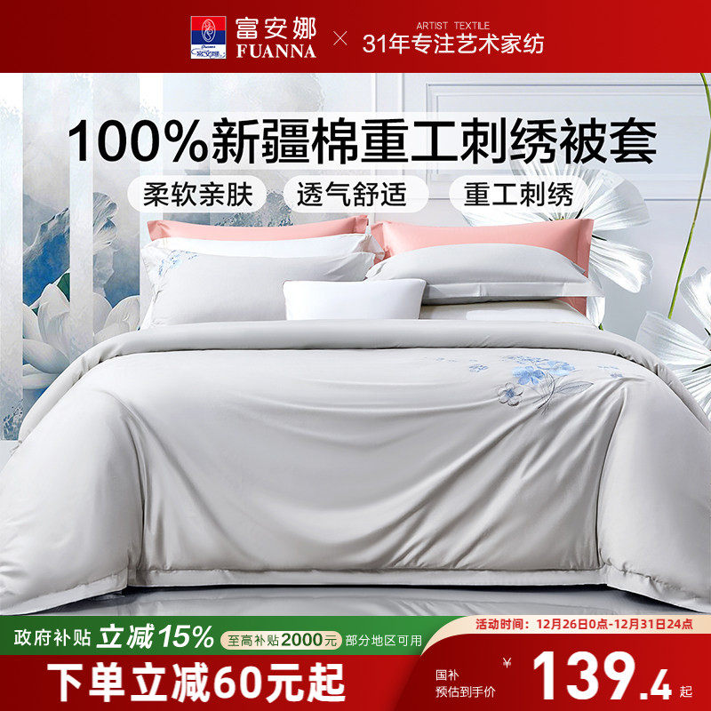 富安娜纯棉被套60支长绒棉单人被套单独被罩全棉纯棉单件新款夏季
