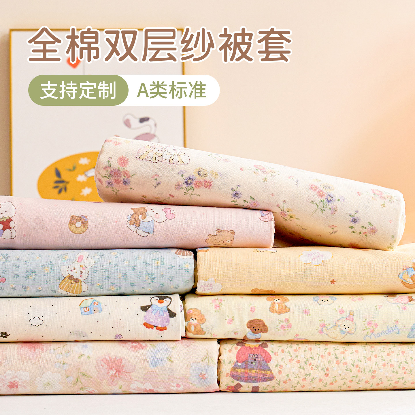 A类双层纱儿童纯棉被套单件1.2x1.5x2.0米150x200cm单人被罩定做