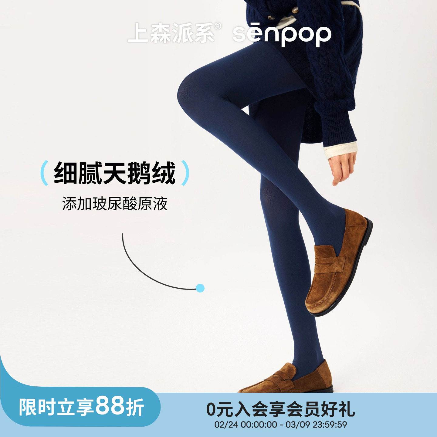 上森天鹅绒打底袜春秋女不掉档连裤袜玻尿酸连体袜纯色高弹裤袜子