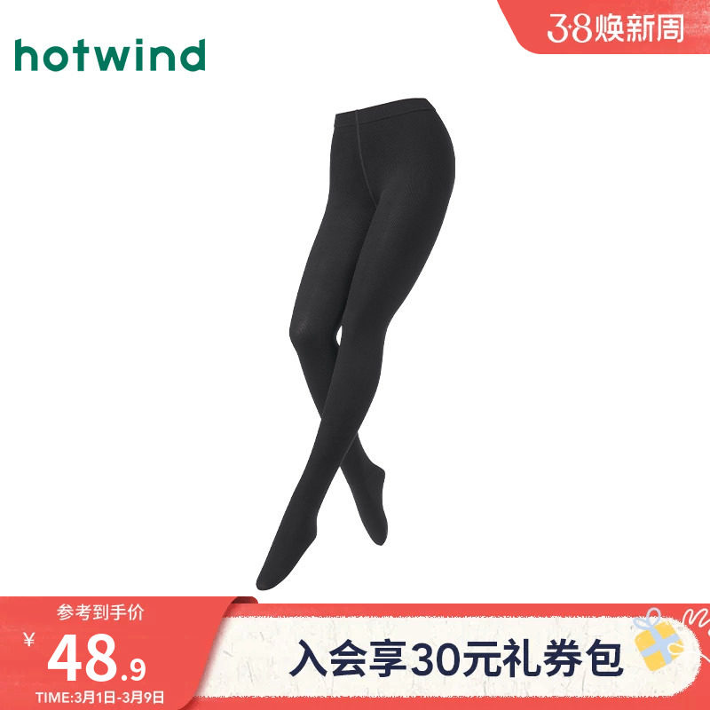 热风女士打底裤2026年春季新款150D竖条微压连裤袜黑色打底连体袜