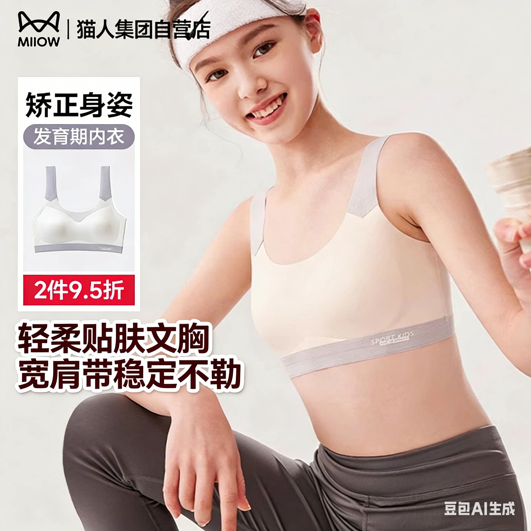猫人凉感儿童女童背心二阶发育期宽肩带无痕裸感少女文胸发育内衣
