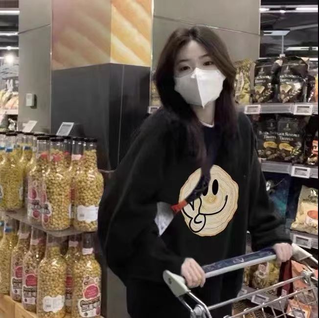 港风秋冬季加绒加厚圆领纯棉卫衣女韩版宽松百搭男女生上衣外套潮