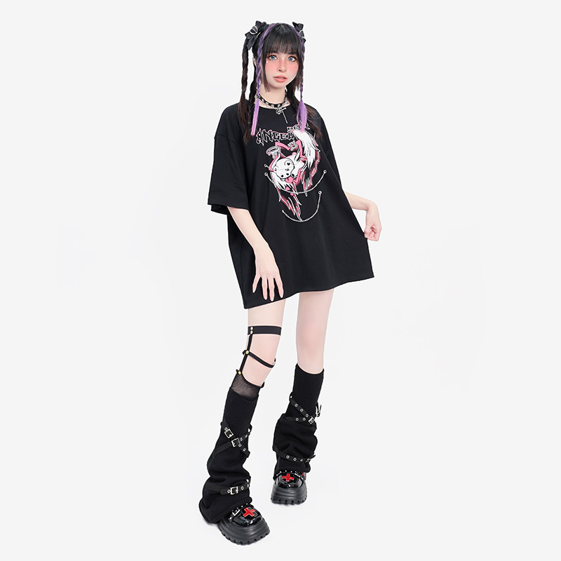 猫愿原创【天使爱神】亚文化Y2K链条宽松中长款T恤朋克甜酷女夏季