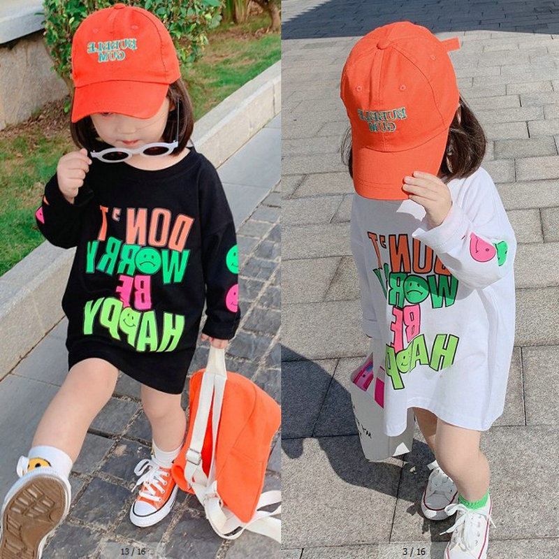 女童春季长袖卫衣裙春秋中小童字母连衣裙宝宝休闲宽松中长款T恤