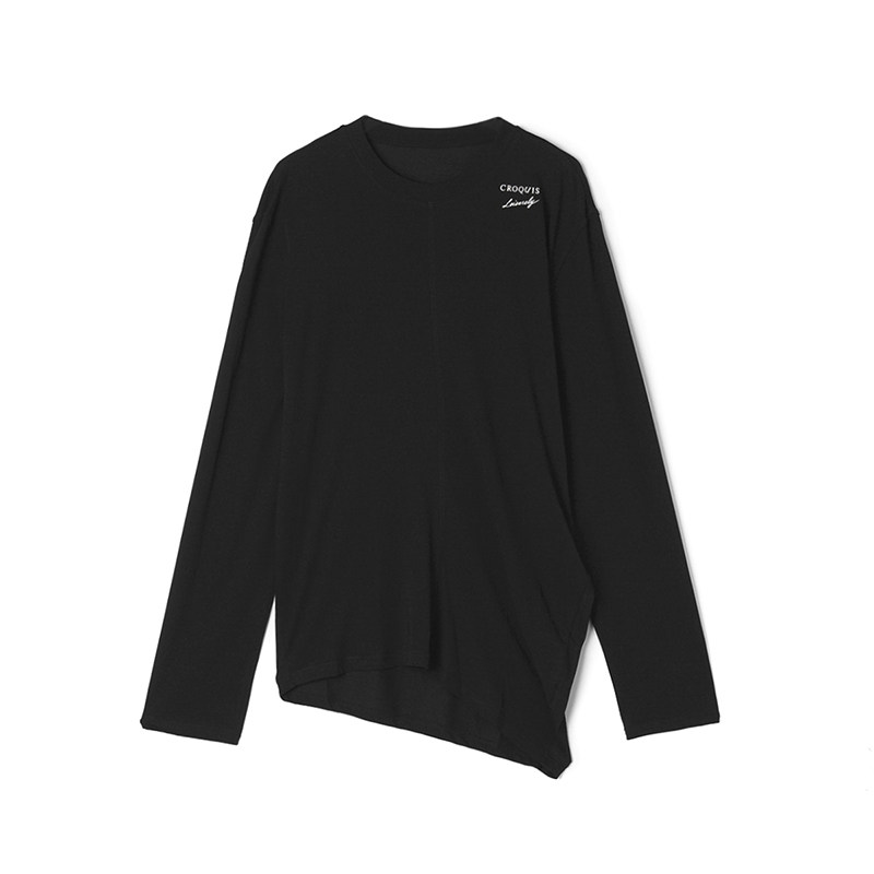 立体剪裁POLO领长袖T 不挑体型显瘦 宽松中长款t恤 日单大码女装