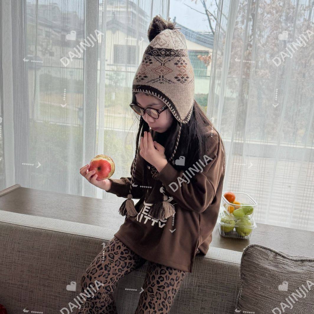 25冬季新款KT猫系列卡通复古印花T恤女宝宝设计感宽松中长款T恤