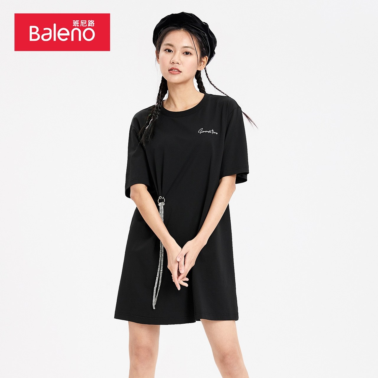 欧货拼色织带中长款T恤女2025秋冬新款宽松百搭显瘦下摆开叉体恤