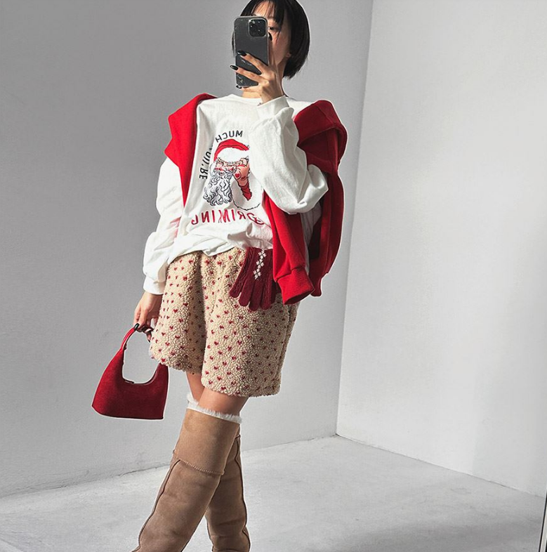 Cmy korea韩国代购女装 圣诞老人图案印染款宽松中长款T恤