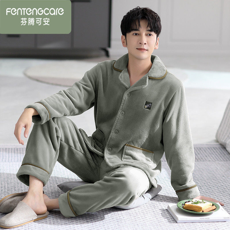 芬腾珊瑚绒男士睡衣加厚加大码法兰绒青年秋冬季可外穿家居服套装