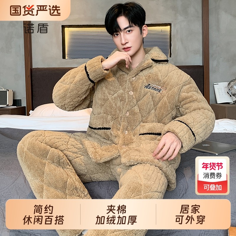 男士睡衣冬季珊瑚绒加厚加绒三层夹棉秋冬款2025新款可外穿家居服