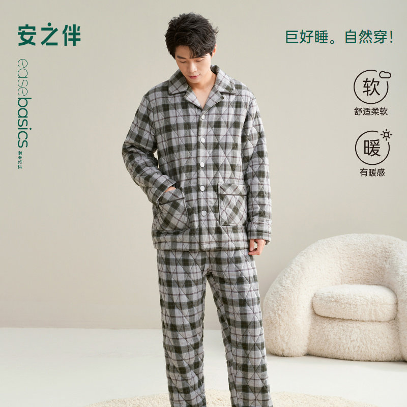 安之伴【巨保暖】三层加厚夹棉男士睡衣冬季珊瑚绒冬款家居服套装