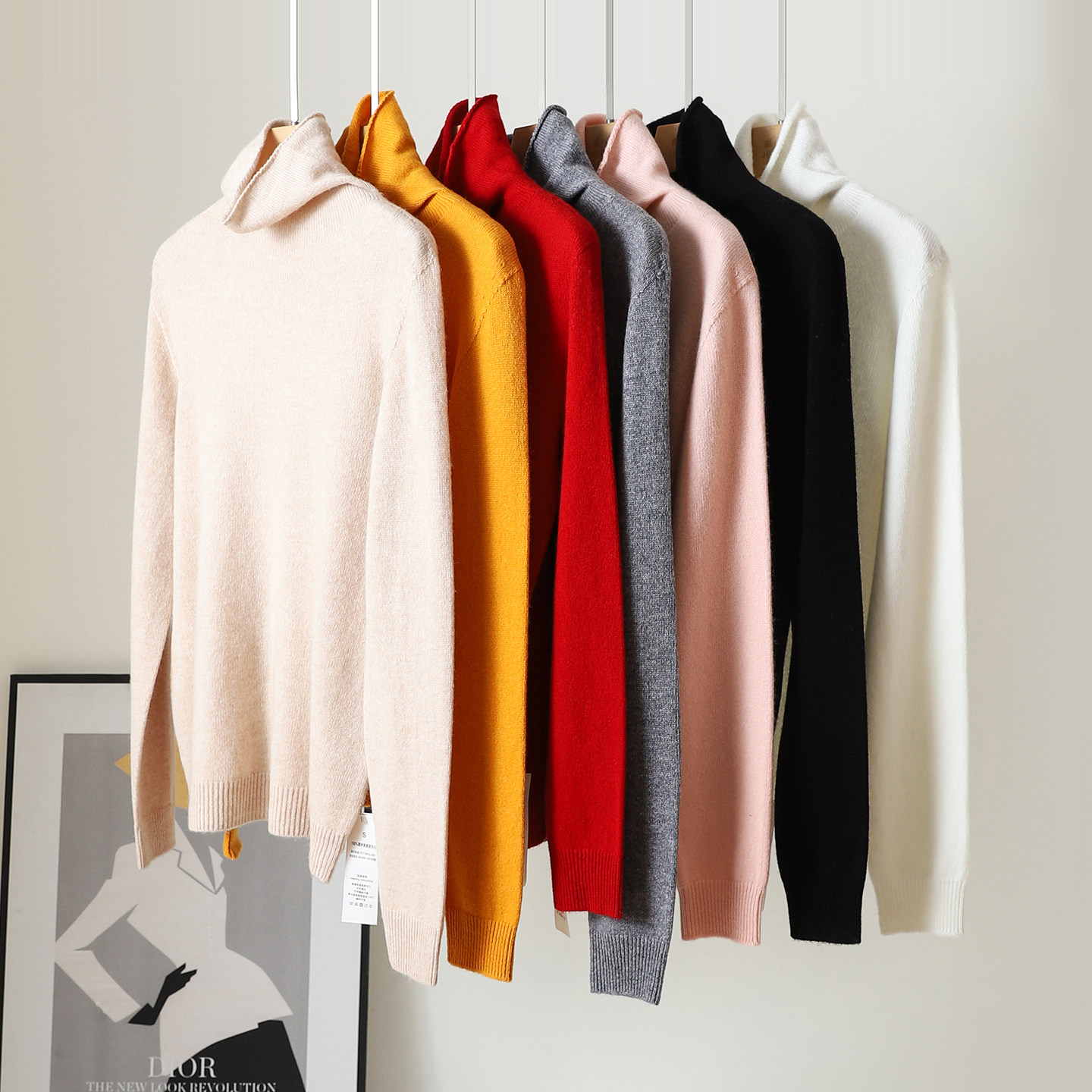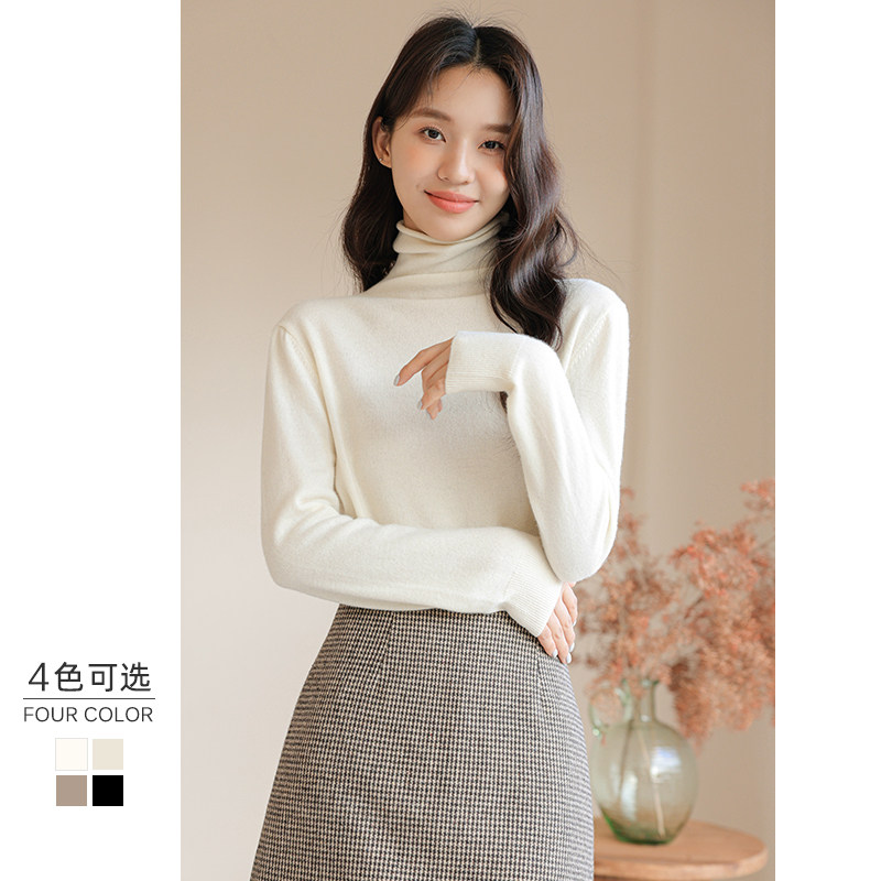 2025冬季上新爆款纯山羊绒堆堆领毛衣女修身内搭针织衫白色打底衫