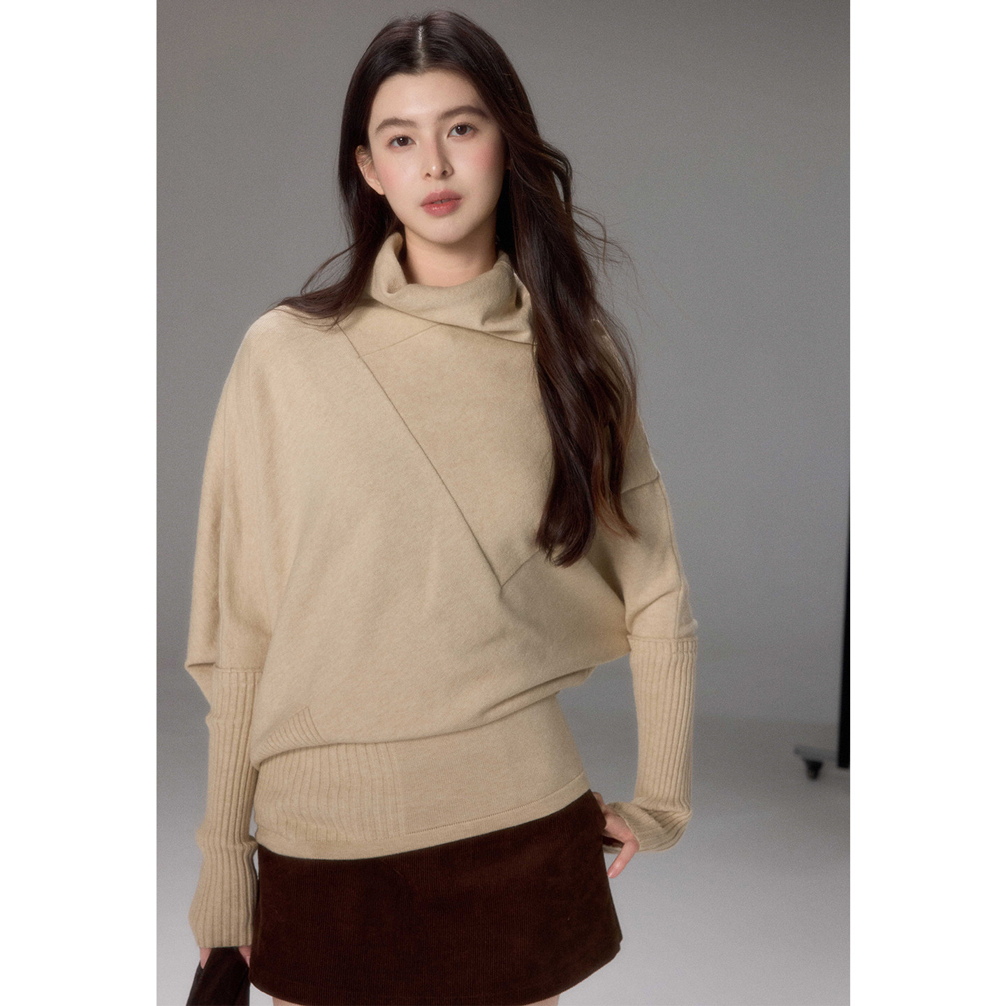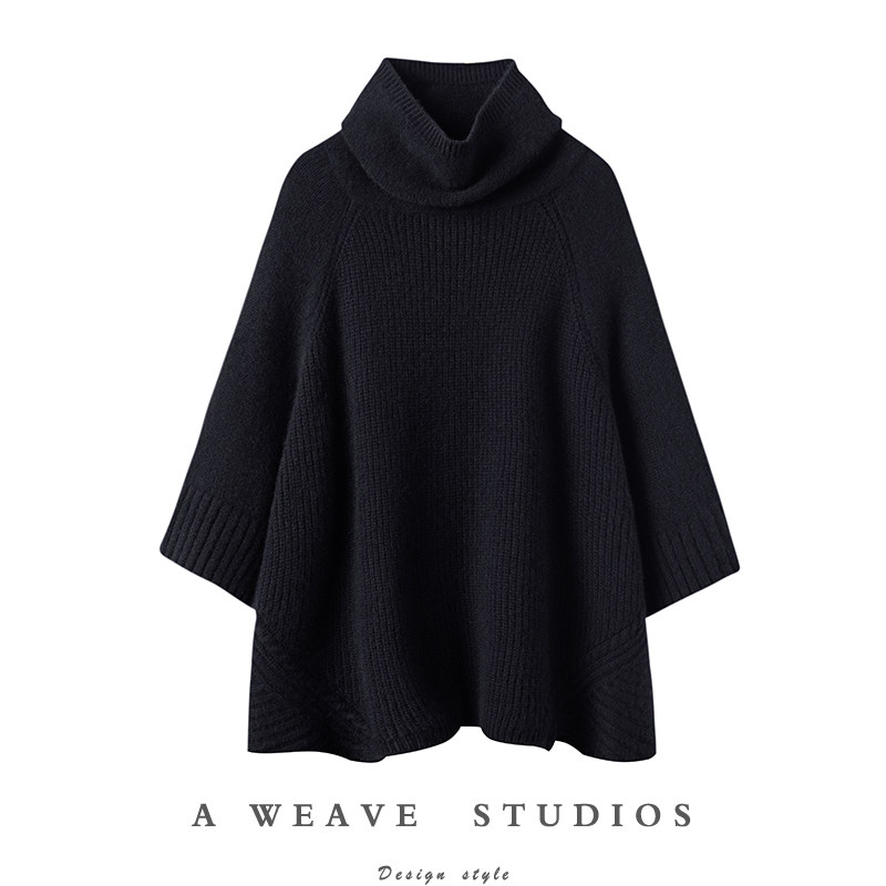 贰羊设计【遇寻】设计感斗蓬式解构分割线堆堆领毛衣女冬宽松上衣