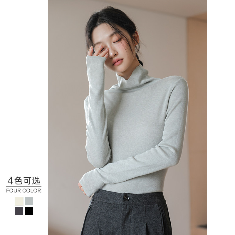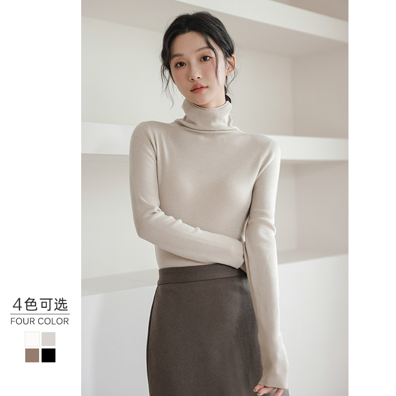 高领紧身软糯羊毛打底衫女2025秋冬新款内搭针织衫薄款堆堆领毛衣