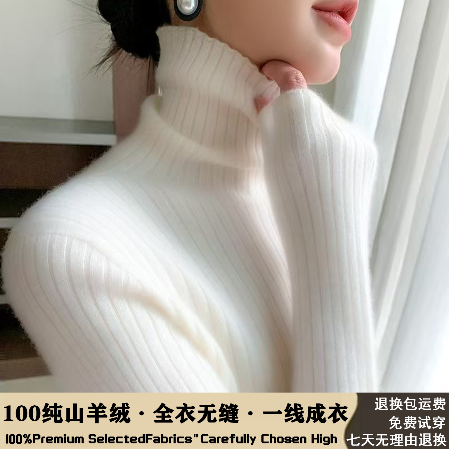 - 半高羊绒衫女