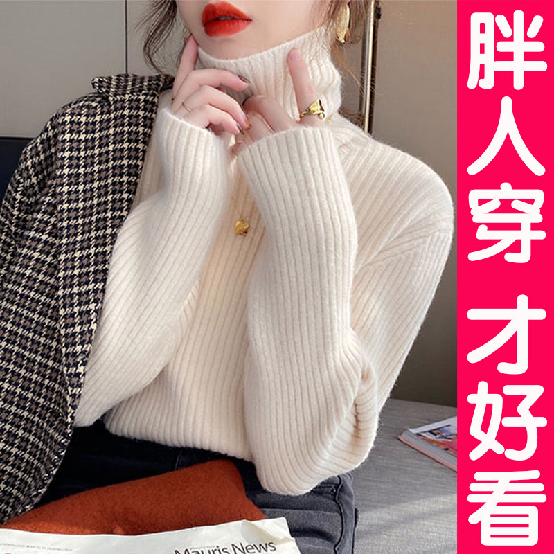 堆堆领毛衣女秋冬新款遮肚子羊绒打底衫宽松特大码外穿羊毛衫上衣