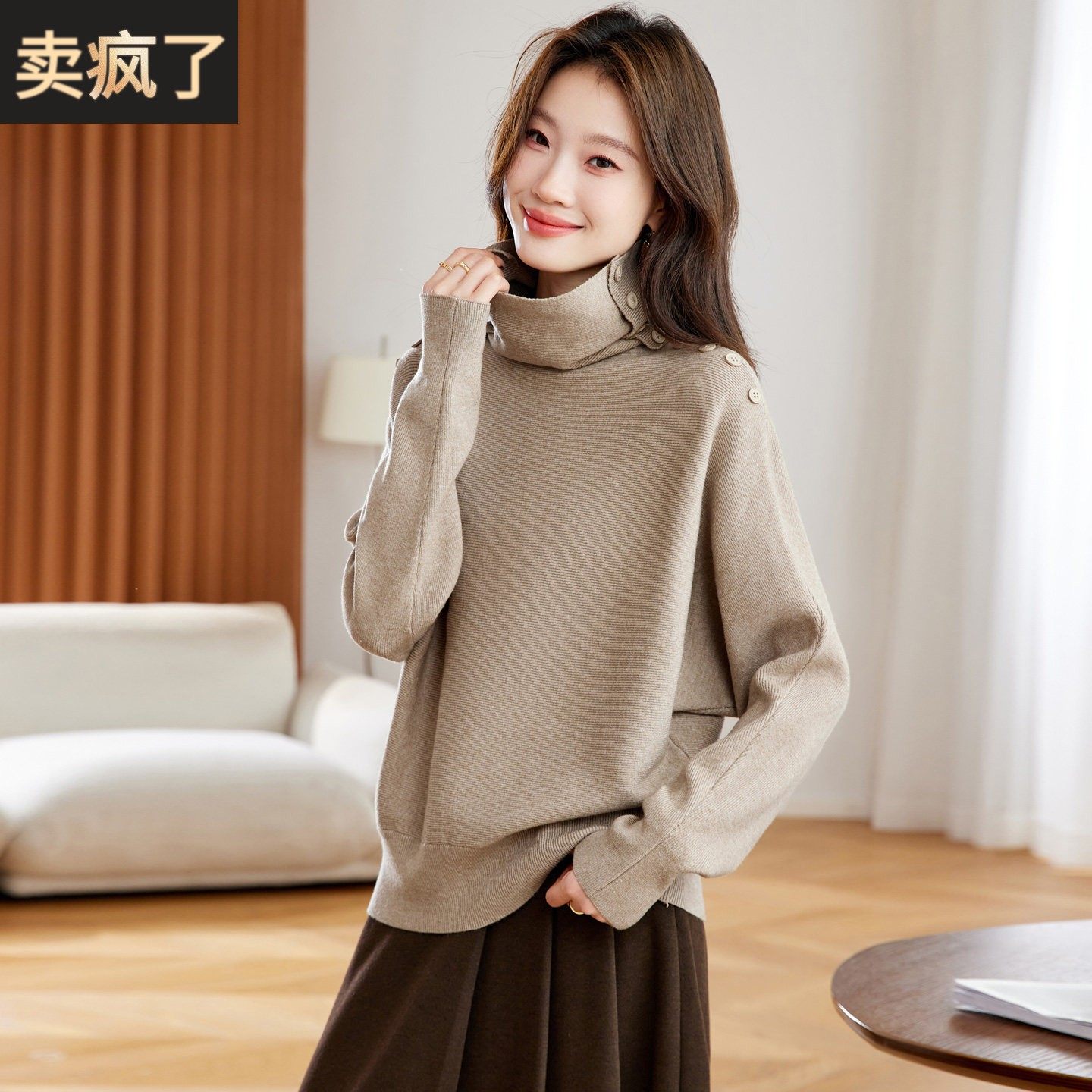 - 大高领毛衣女套头宽松