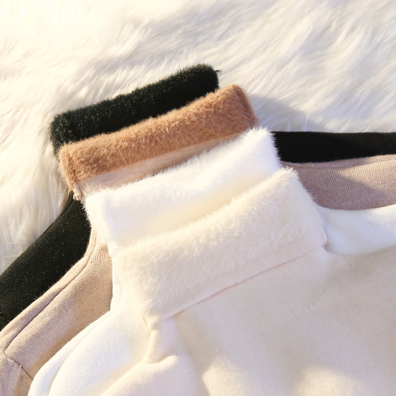 堆堆领毛衣女内搭秋冬高领修身加厚一体绒保暖长袖打底针织衫上衣