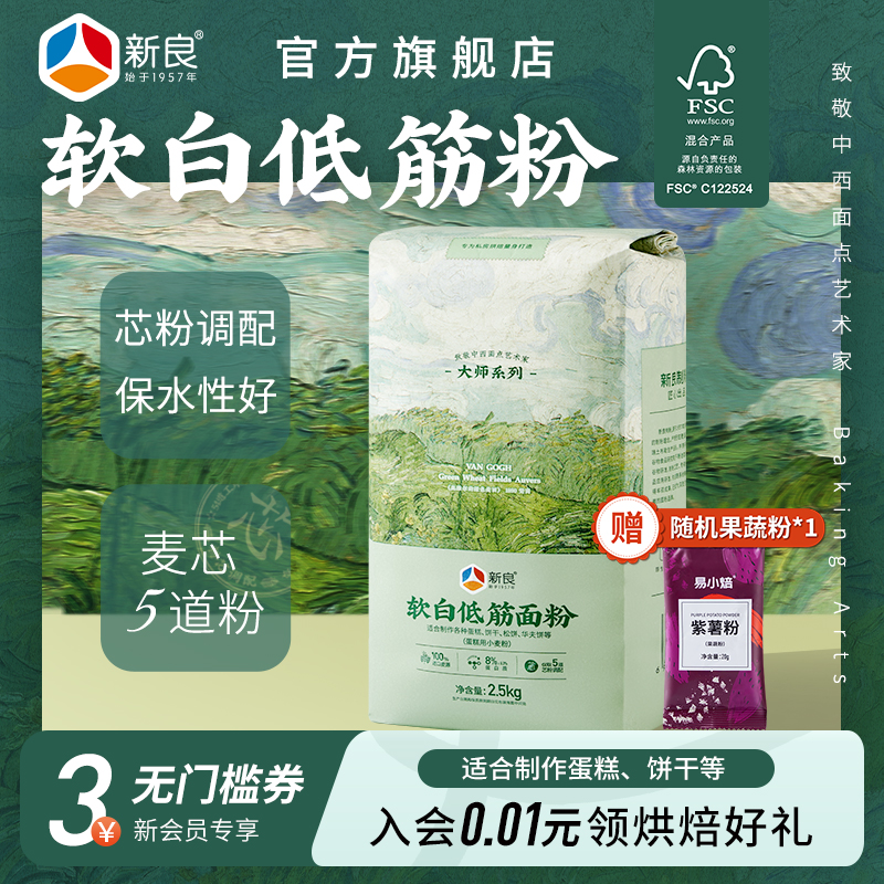 新良纯享低筋面粉戚风蛋糕专用粉家用小麦粉松饼曲奇饼干烘焙原料