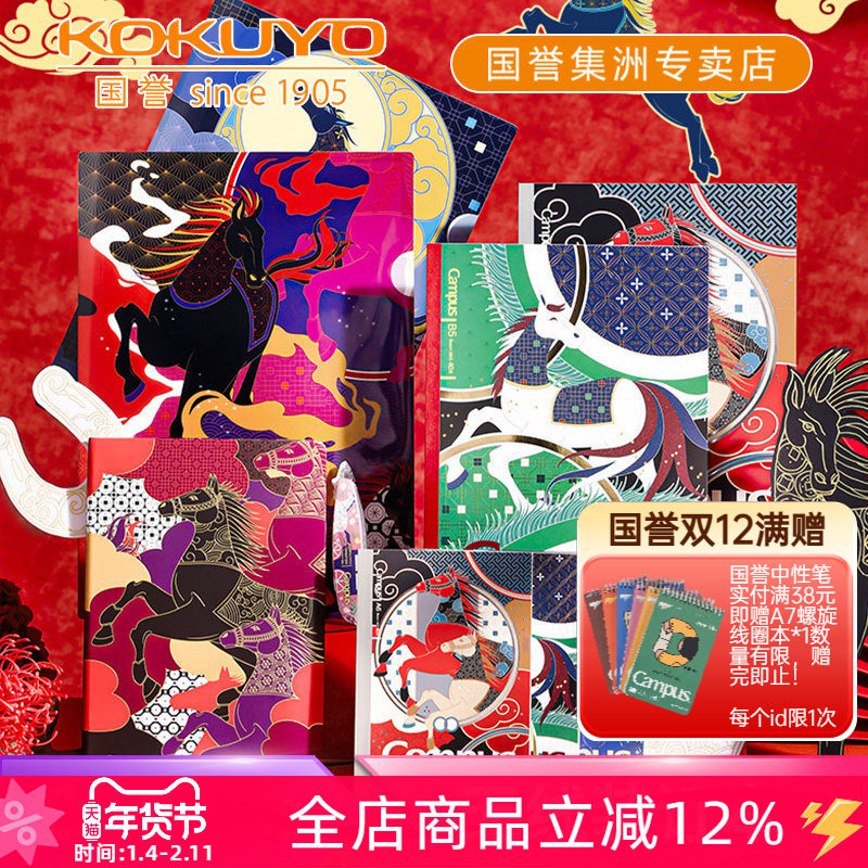 日本kokuyo国誉2026马年限定A6无线装订本套装B5学生用笔记本胶装本可平摊记事本横线本国风卡通封面作业本