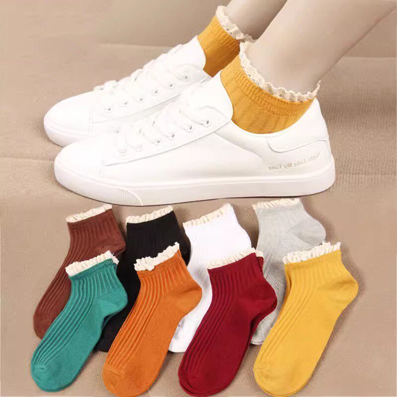 秋冬季3-8双装袜子女韩版日系女袜春夏季短袜船袜潮流花边袜个性