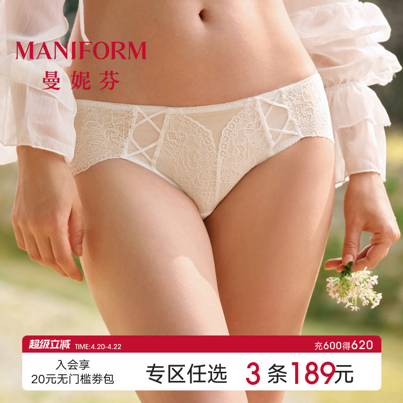 曼妮芬内裤高颜值女士舒适薄中低腰三角裤性感蕾丝裤抗菌内裆底裤