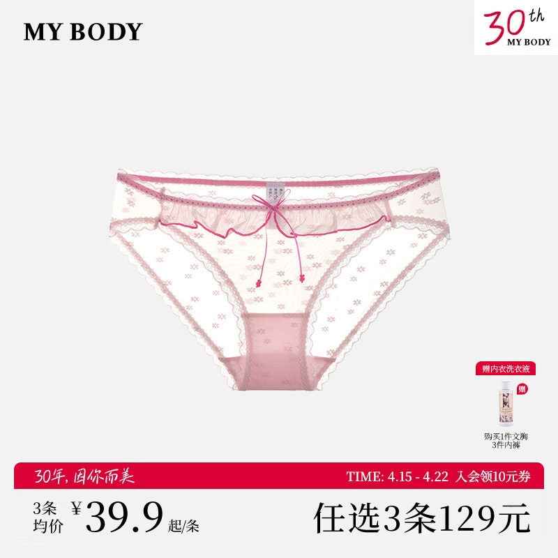 3件129|商场同款MYBODY内裤女性感蕾丝网纱纯棉裆轻薄低腰三角裤