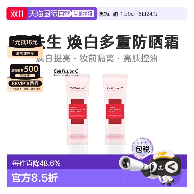 韩国直邮CellFusionC秀肤生粉色防晒霜女款隔离遮瑕二合一正品
