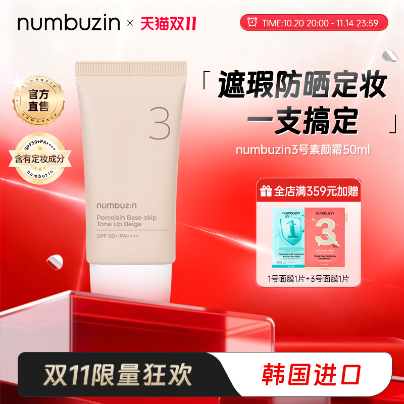 韩国numbuzin数字3号柔焦滤镜素颜霜隔离遮瑕三合一遮瑕BB懒人霜