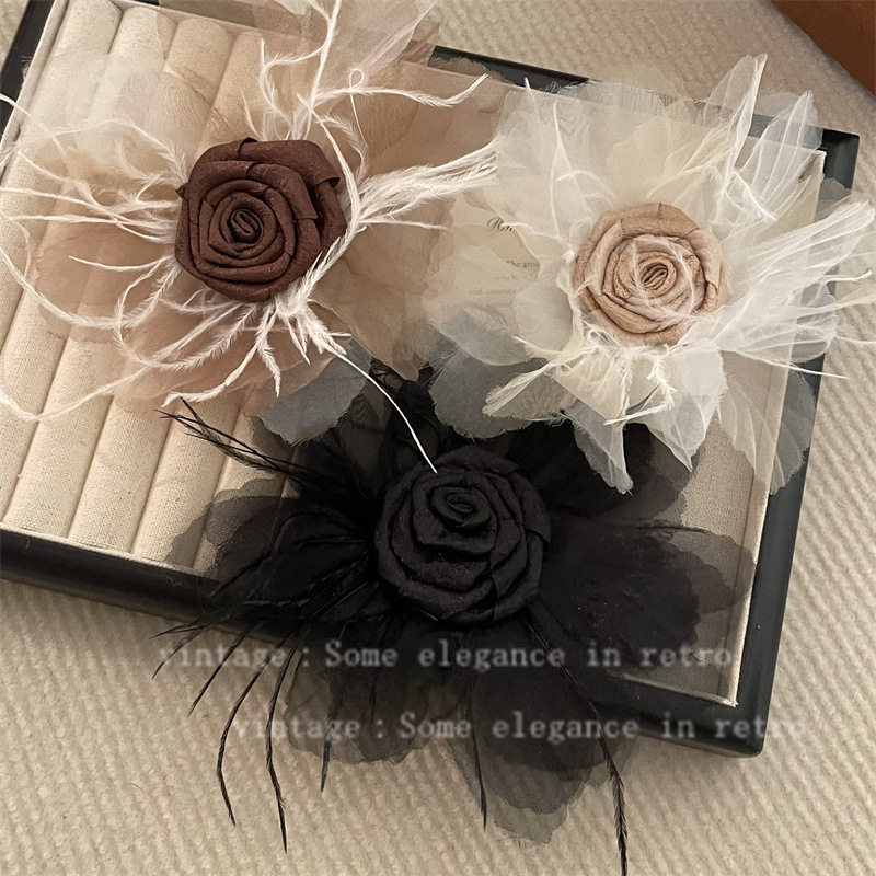 超仙优雅玫瑰花毛毛花朵胸针发夹高颜值小众设计礼服西装胸花配饰
