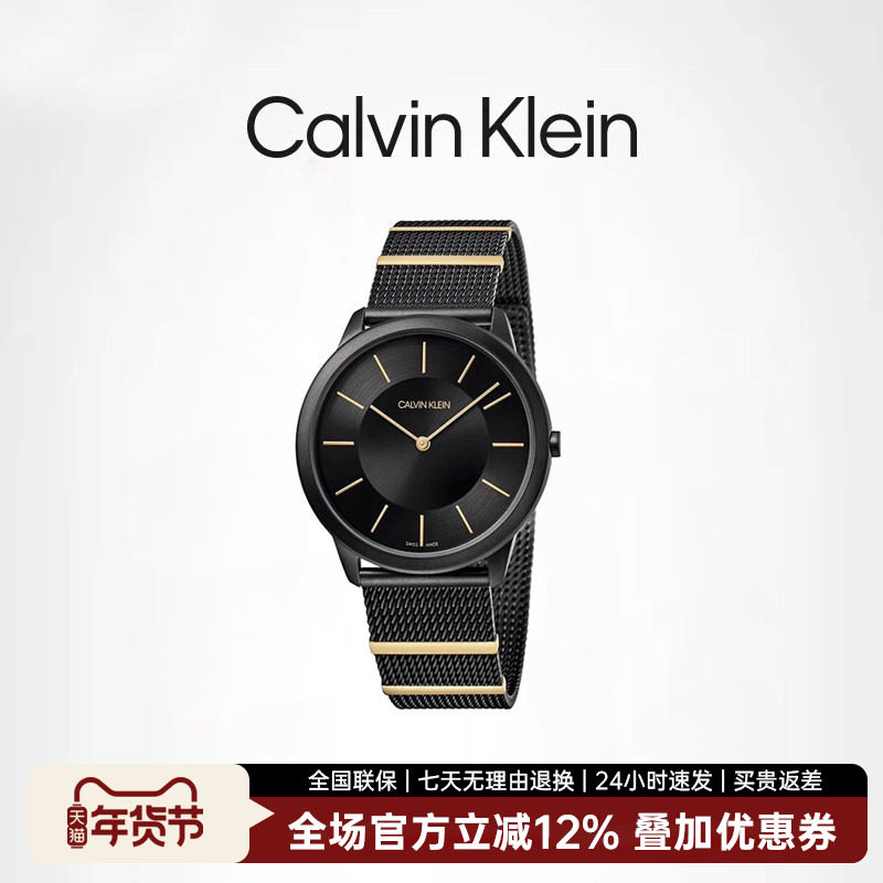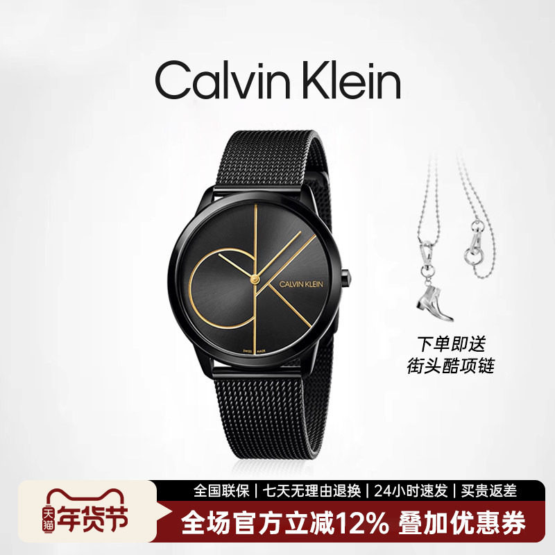 【自营】Calvin Klein手表女瑞士CK正品防水潮流黑色石英情侣腕表