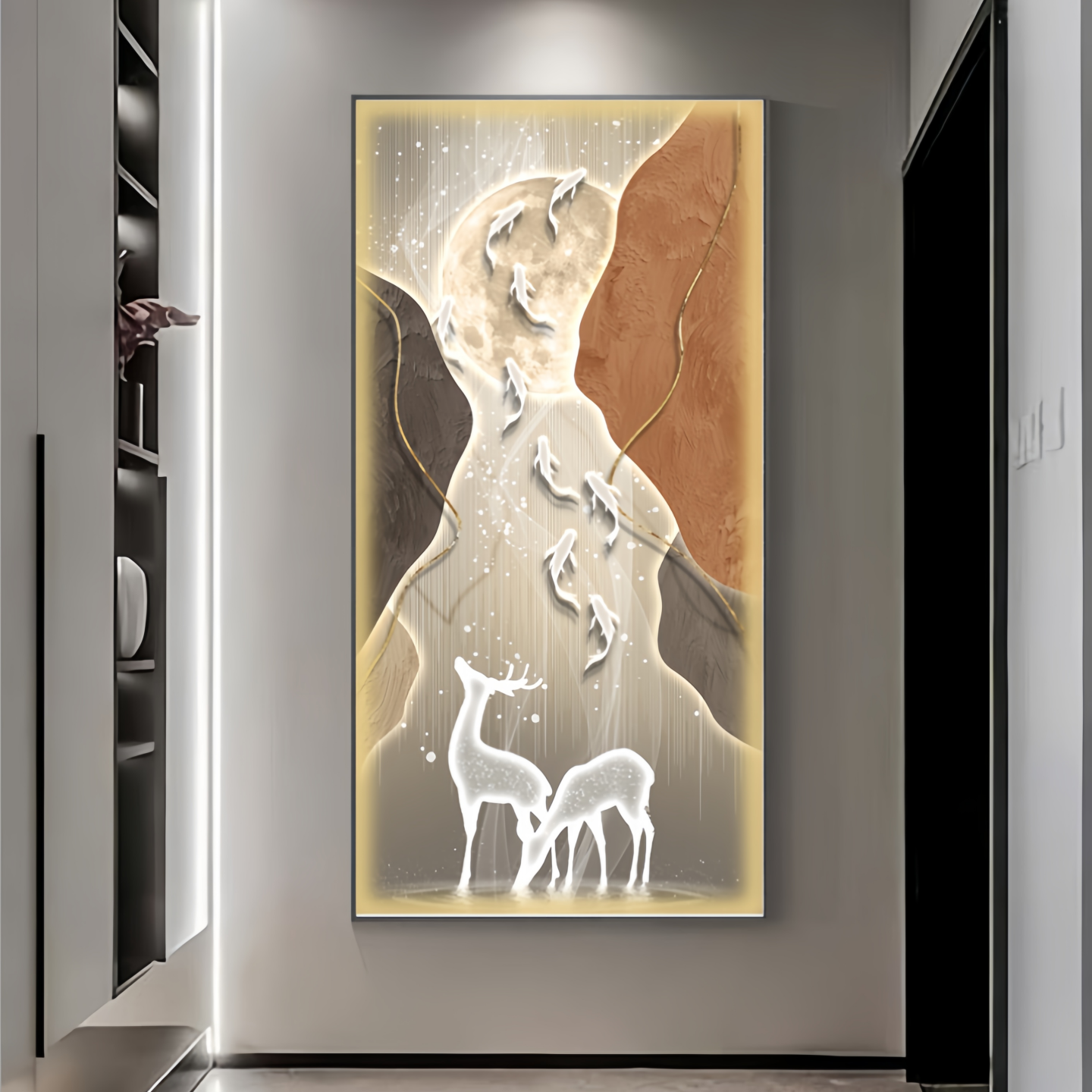 九鱼聚财玄关装饰画竖版现代轻奢大气走廊过道挂画高档抽象壁画灯