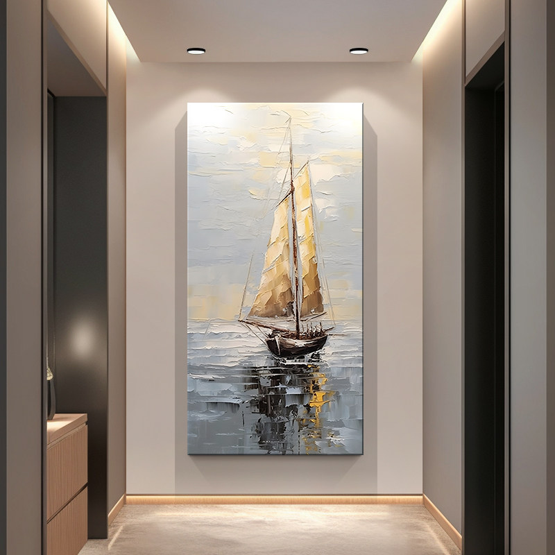 2026年新款玄关装饰画一帆风顺走廊过道挂画高端立体砂岩抽象壁画