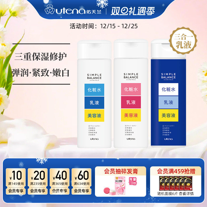 日本UTENA佑天兰三效合一化妆水美容液面霜保湿美白乳液凝露220ml