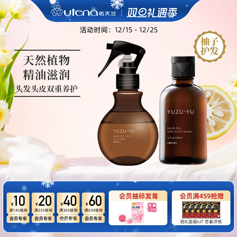 日本utena/佑天兰天然护发精油喷雾修护受损柔顺防毛躁柚子清香