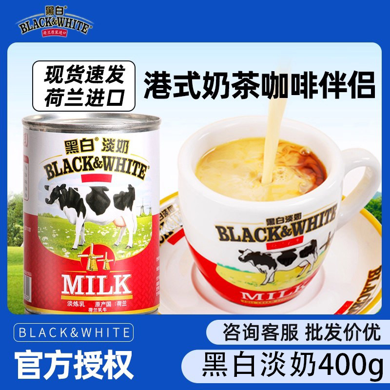 荷兰黑白淡奶400g*48罐全脂奶港式丝袜奶茶烘培咖啡商用专用原料