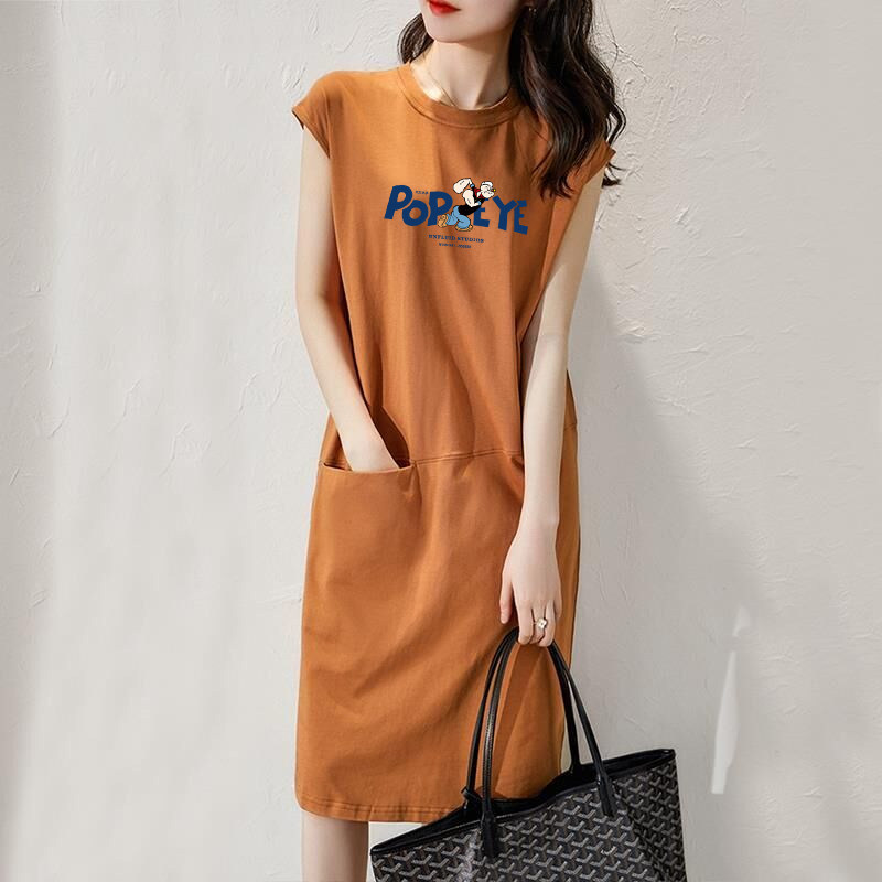 2026年夏装新款无袖背心T恤裙日系孕妇过膝中长款高腰显瘦连衣裙