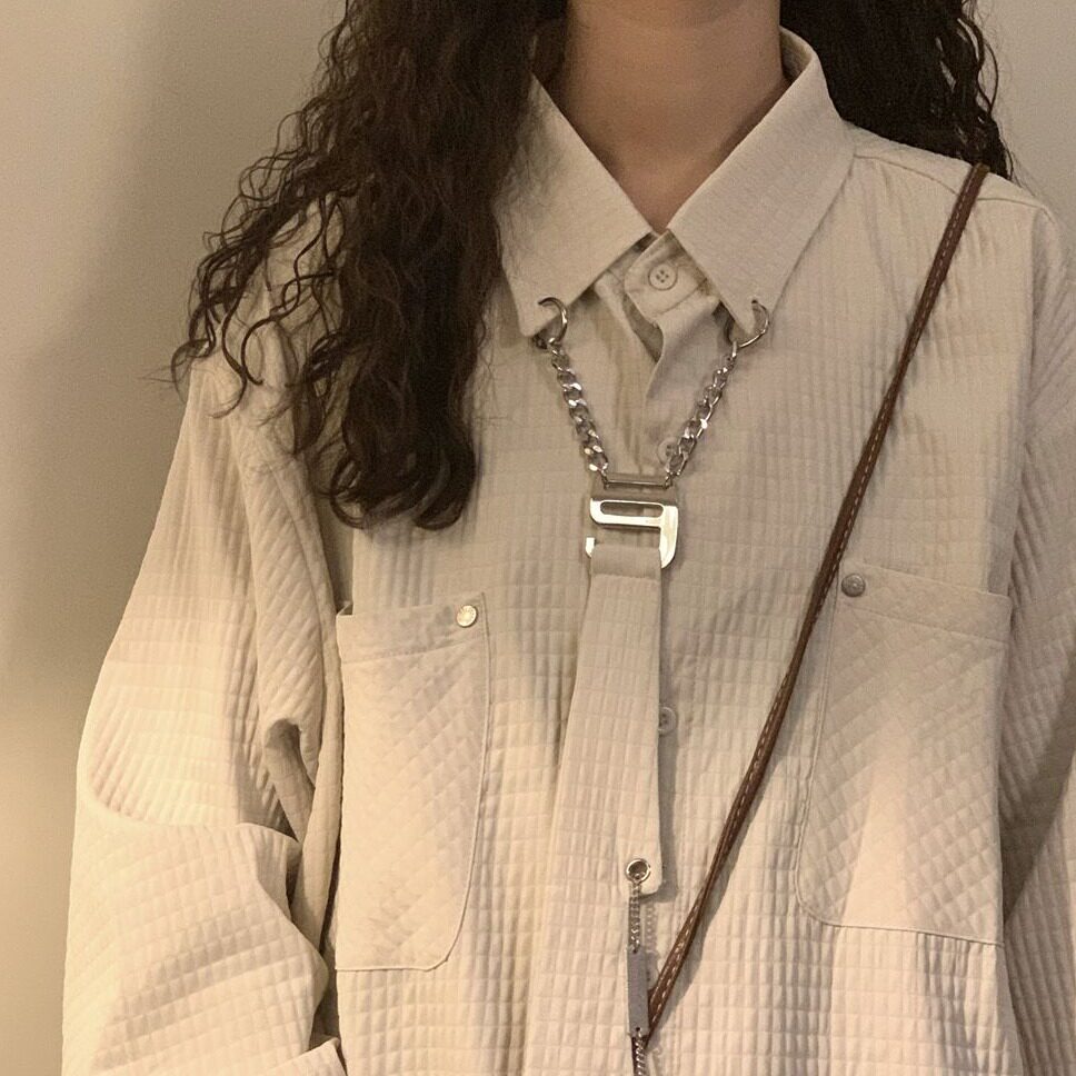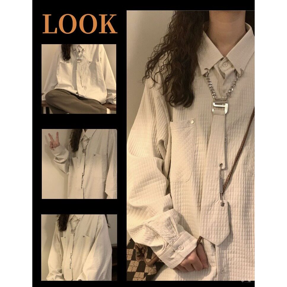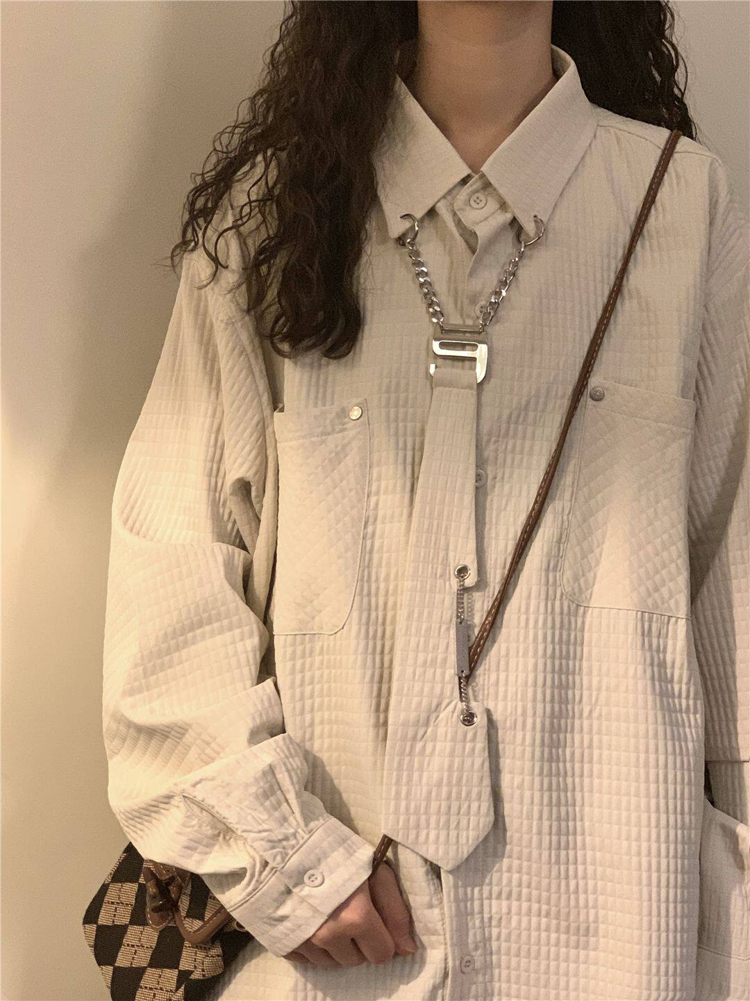 2024秋季新款美式复古玉米格长袖衬衣女潮情侣领带衬衫外套设计感