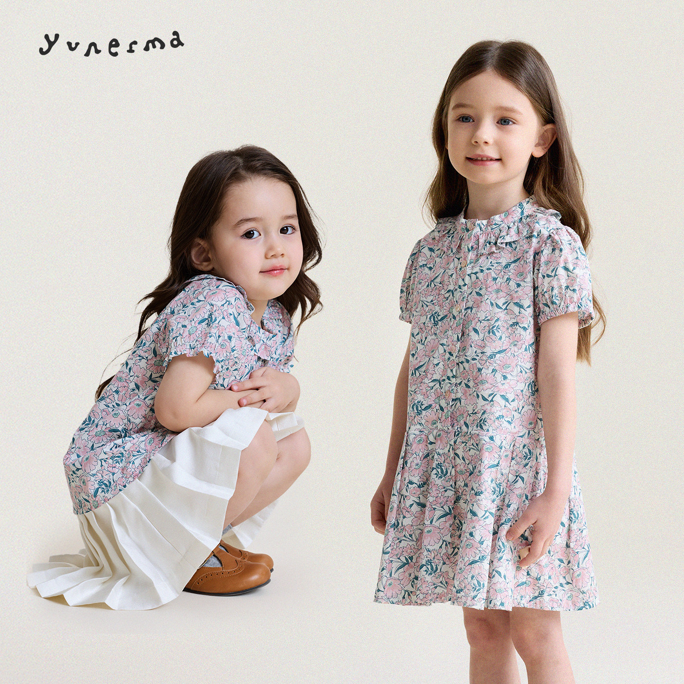 允儿妈春夏姐妹款碎花娃娃衫连衣裙套装女童气质公主裙儿童衬衫潮