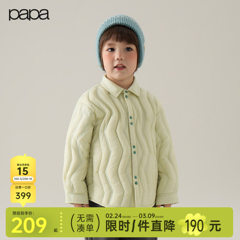 【新品】papa爬爬冬季儿童羽绒服男女童衬衫领短款外套潮流百搭