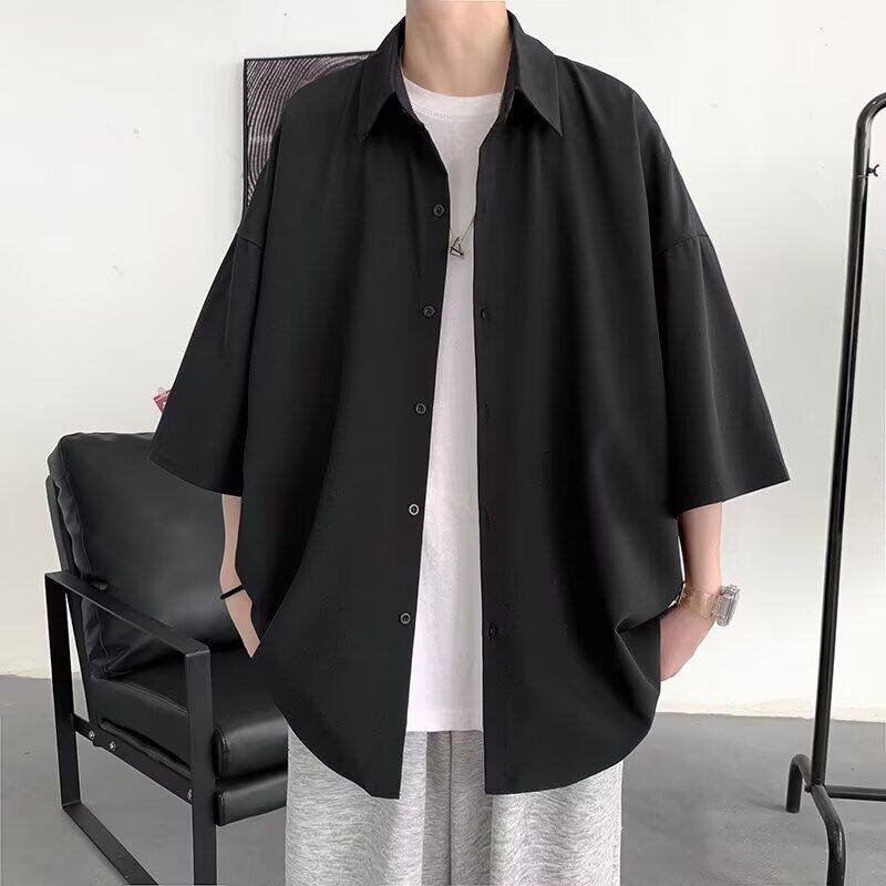 加肥加大码300斤港风垂感冰感七分袖衬衫男夏季薄款痞帅衬衣女潮