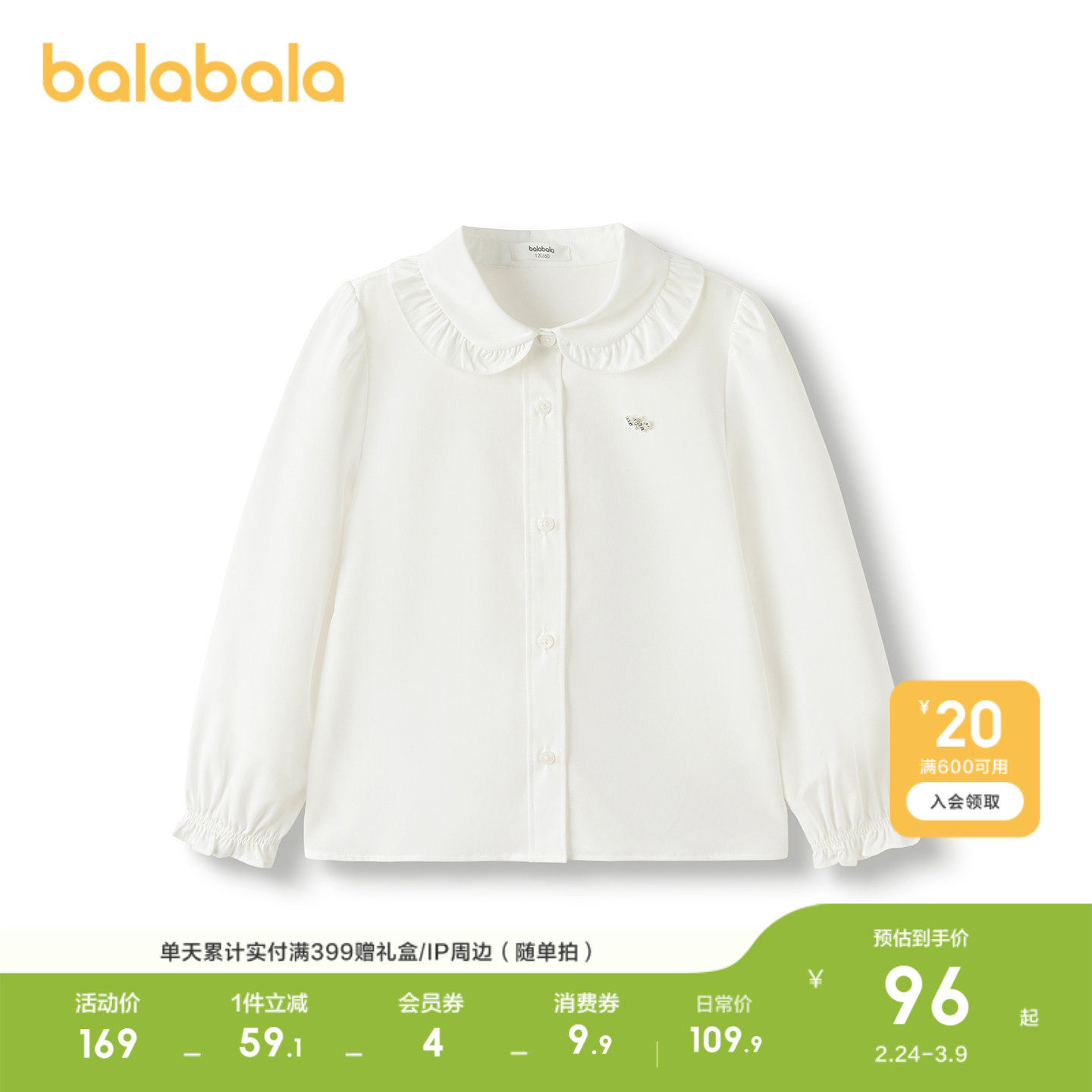 巴拉巴拉童装女童衬衫儿童长袖2026休闲春装舒适凉感抗菌时尚潮酷