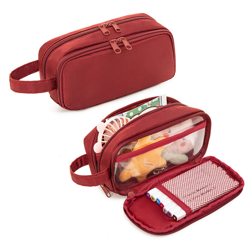 双层牛津布笔袋韩版简约大容量双拉笔袋小学生便携拉链手提文具袋